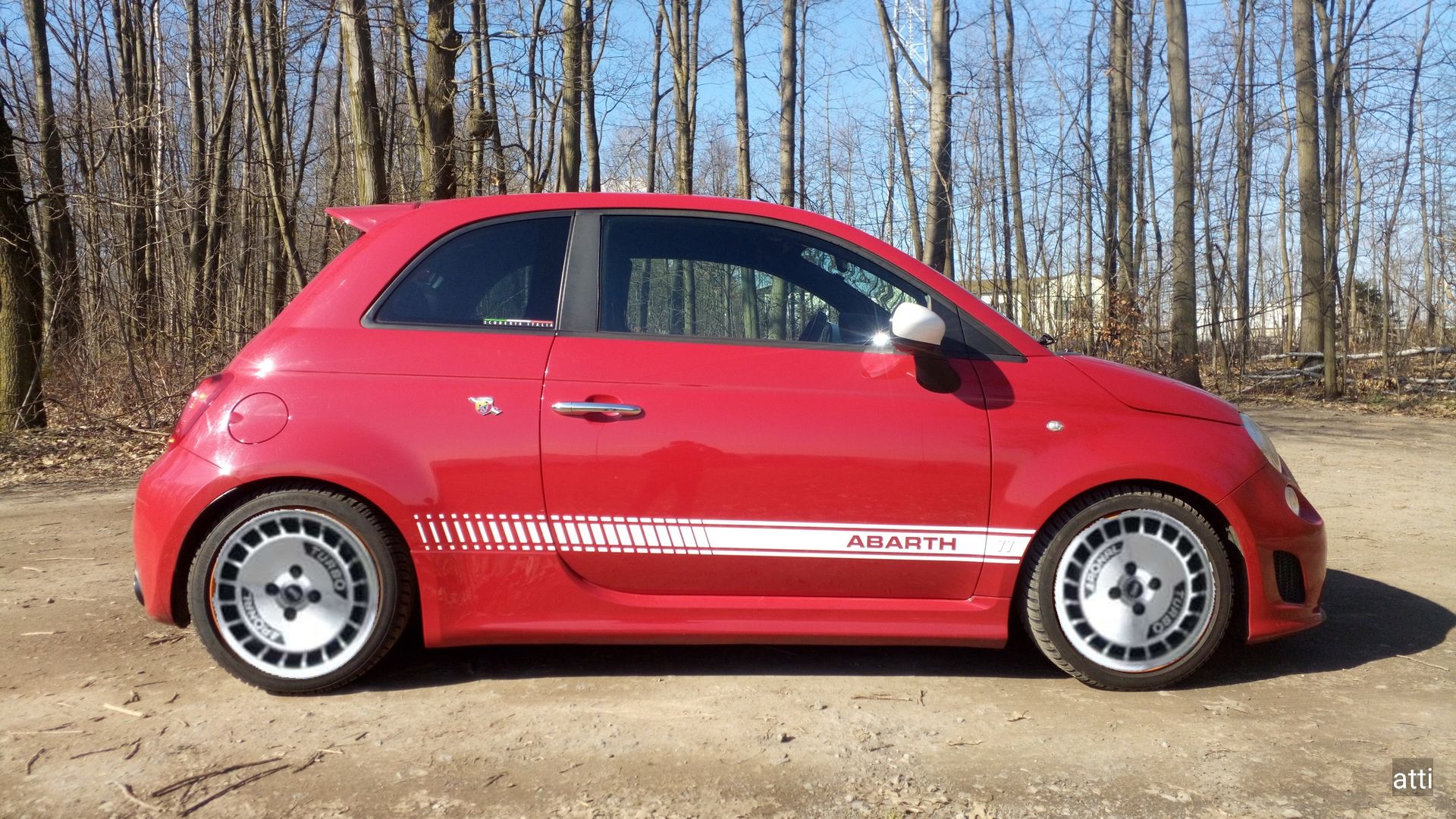 Sehr viele Abarthisti sind mit 7x17 ET 35 mit Spurplatten vorne 10mm / hinten 15 mm und den Original-Reifendimensionen 205/40 unterwegs.