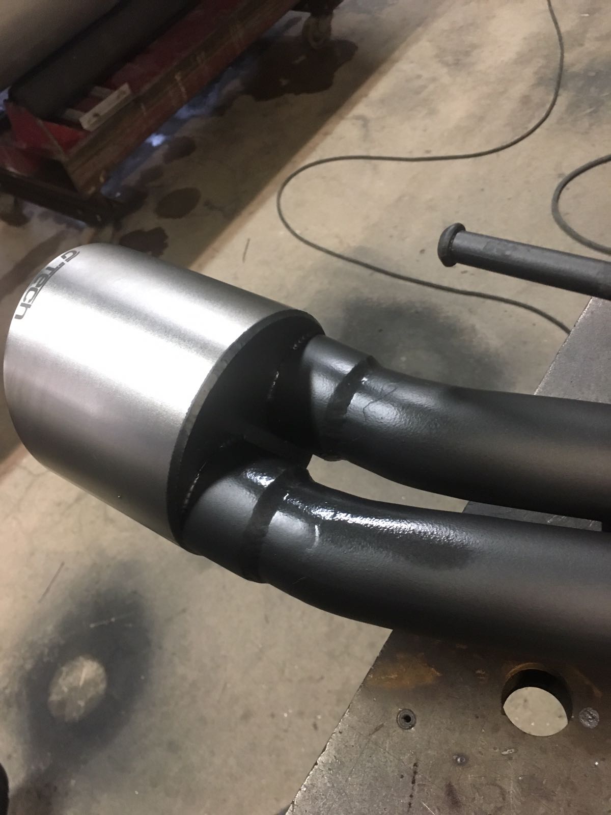 Eine universelle (63mm in/114mm out) Auspuffblende wurde bestellt und ab zur Werkstatt für den Umbau.