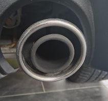 • Ich störte bei meinem Abarth 595 Turismo auch die "Rohr im Rohr" Optik. Deswegen habe ich den inneren Bereich mit schwarzem Auspufflack lackiert. Dadurch 'verschwindet' optisch dasinnere Rohr, wenn man den Auspuff aus einiger Entfernung betrachtet.