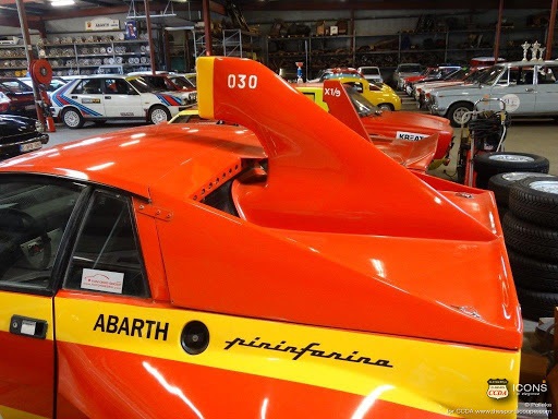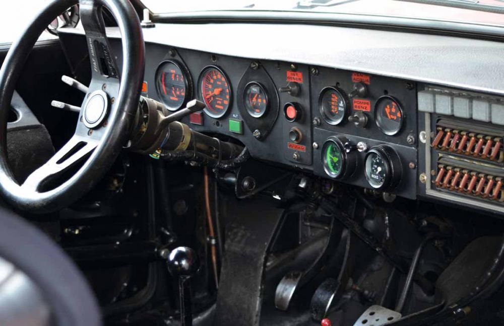 Die gelb/blauen Streifen auf Hauben und Dach ist eine Erinnerung an die Farben des Turiner Wappens. Seit dem Fulvia HF wurden Sie zum Kennzeichen der Lancia-Sportmodelle.