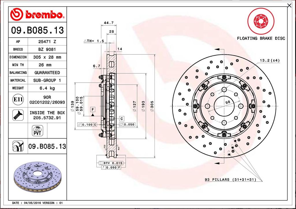 Die großen Motorisierungen haben die fast gleichen Bremsscheibenabmessungen wie der 595 Compe/Esseesse, eben auch nur mit 5 Löchern. Und die Hersteller gestalten ihre Achsschenkel in der Regel diesbezüglich auch gleich, um sich leichter aus dem Baukasten bedienen zu können. Und dass der eine mm kriegsentscheident ist, kann ich mir nicht vorstellen.