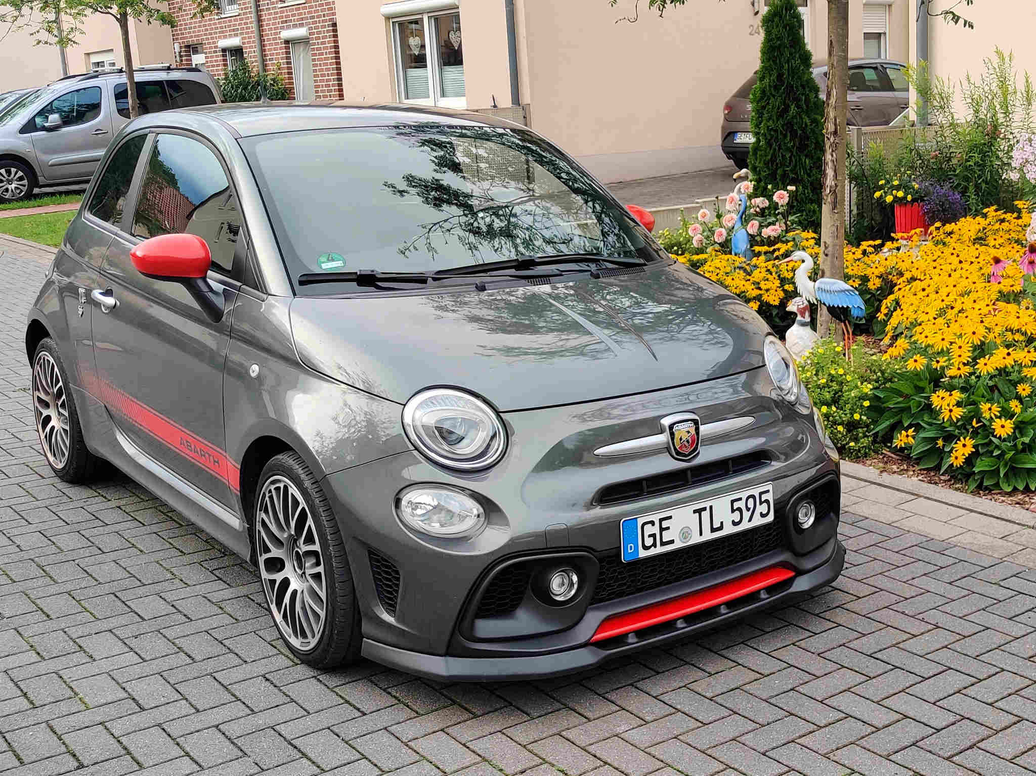 Mein Abarth 595: 145 PS Modell, Baujahr 2017, Trofeo Grau mit Kit Estetico Rot, Abarth Touring Felgen in 17", Ulter V2 mit Carbon Endrohren, Sculptor Rodin Ansaugschlauch, Alpha Competition Shortshifter, AP Gewindefahrwerk, Spurplatten 10mm/15mm, CSR Cup-Spoilerlippe, CSR Dachspoiler, Philips Ultinon Boost LED Scheinwerfer-Leuchten, Vacarparts LED Rückleuchten