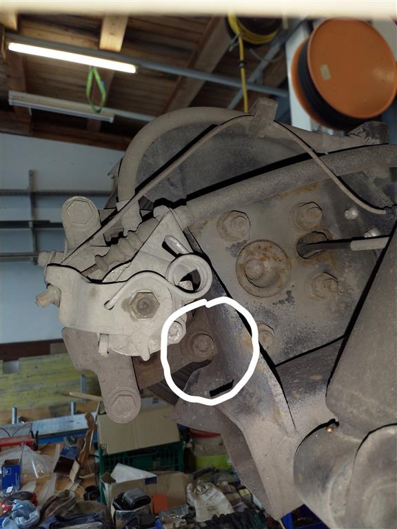 Und ja, ohne Demontage bzw. Lösen der 4x Radträgerschrauben, kommt man nicht zu der oberen Inbusschraube des Bremssattels.