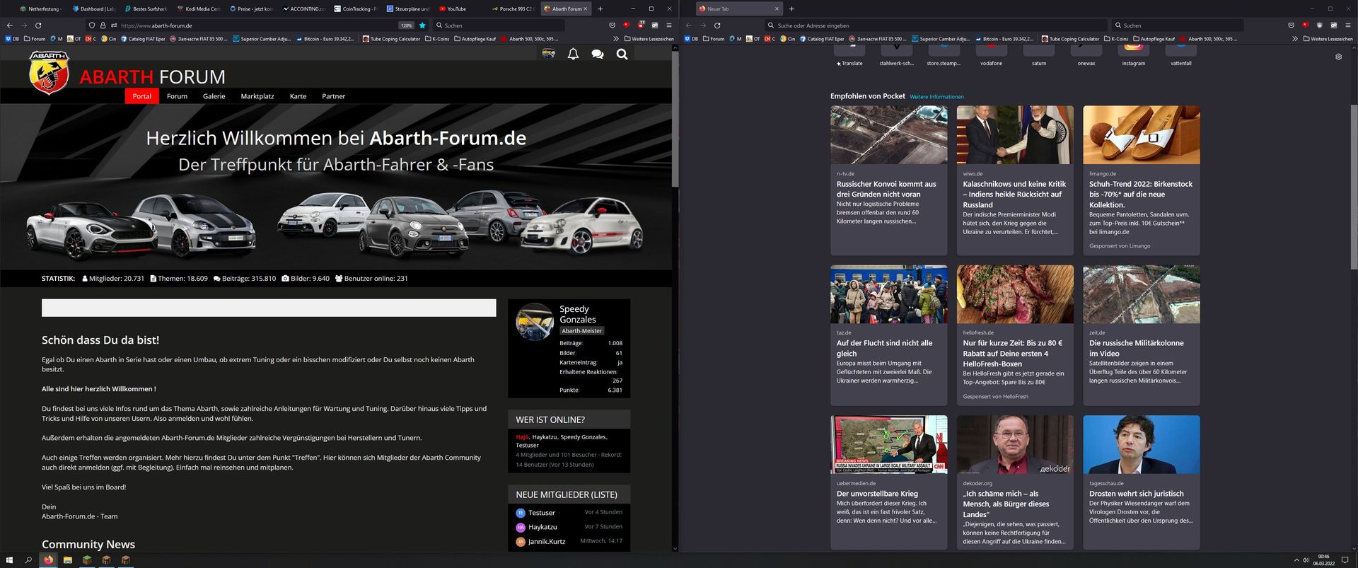 Browser hab ich einmal auf 50/50 mit 2 Webseiten gefüttert.