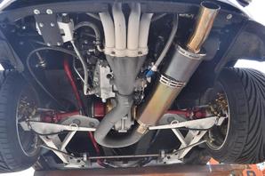 Wir sind jetzt draußen bei Jelles Auto. Er weist darauf hin: „Das Schalten kann mit dem Hebel erfolgen, aber ich habe auch Schaltwippen montiert. Das Lenkrad lässt sich wie bei einem F1-Auto mit einem einfachen Klick abnehmen. Wir haben viel moderne Technologie angewendet. Das Schalten erfolgt über ein „Drive-by-Wire“-System. Hochschalten geht ohne Kupplung, nur beim Runterschalten muss ich kuppeln. Unter der vorderen Abdeckung befindet sich der Kraftstofftank mit Servolenkung und Servobremsen daneben. Es passt einfach alles. So wie das Auto hier steht, ist es voll ‚straßenzugelassen‘, vom RDW geprüft und auch noch ordentlich mit gültigem TÜV versehen.“