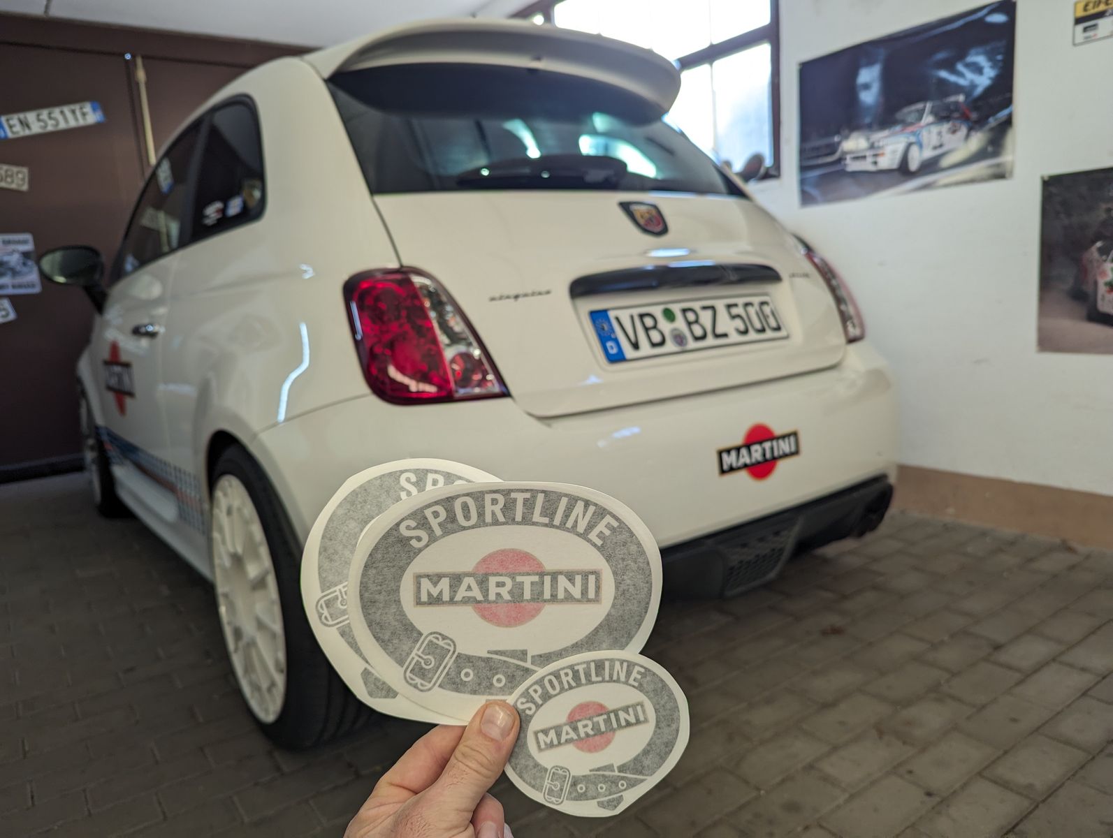 Ich dachte mir ,jetzt habe ich am Abarth schon Felgen im Delta-Style,jetzt kann man ja auch mal schauen,ob es vielleicht ein cooles Martini Design für den Abarth gibt.