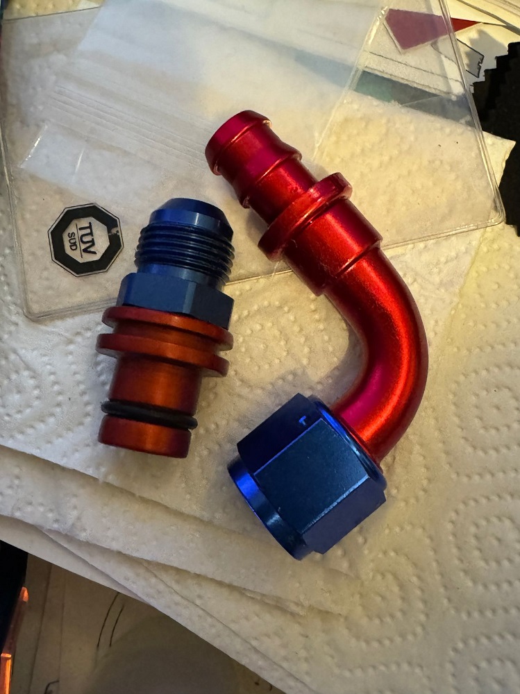 hab jetzt bestellt. Einen Teil beim Turbozentrum, einen Teil bei BAT-Motorsport. Muss ja mal weiter gehen. Ich habe mich entschlossen, erstmal mit dem kleinen 0,25l Nuke-Tank anzufangen, diesen werde ich in dem Dreieck Batterie-Bremsflüssigkeitsausgleichbehälter-Bremskraftverstärker unterbringen. Gewünscht hätte ich mir Schnellkupplungen, das ist mir aber nach mehreren Stunden onlinesuche entweder viel zu teuer (ab 115-150€ pro Kupplung und ich brauch ja 2) oder zu groß bezüglich der Baulänge wenn man verschiedene günstigere Teile verbindet. Wenn ich den Tank leeren will muss ich halt zwei Schellen lösen und ihn rausnehmen, an die Ablassschraube kommt man nämlich leider auch nicht ran. Gibt schlimmeres :D Sollte der sich dann exorbitant schnell füllen hab ich eh ein anderes Problem :/