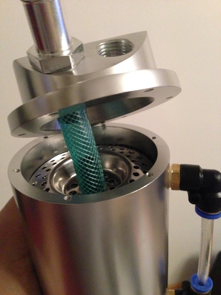 Überrascht bin ich von dem Nuke Tank aber - die einzige aktive Abscheidestelle ist der feine 300Mikron Filter am Auslass, ansonsten ist das Ding leer. Ich dachte, dass an dieser Scheibe der Einlass ist und das Öl an dem "Filter" abtropfen soll und der 300er Filter im Ausgangskanal liegt, dem ist aber nicht so. Hätte man auf den Bildern tatsächlich erkennen können wenn man darauf achtet. Da überlege ich mir auf jeden Fall noch eine leichte Modifikation für den Einlass, und wenns nur ein kleiner Teil eines Stahlschwamms wird. Da hab ich wohl den 0,5l Competition Tank im Auge gehabt, der hat das nämlich so... Mist!
