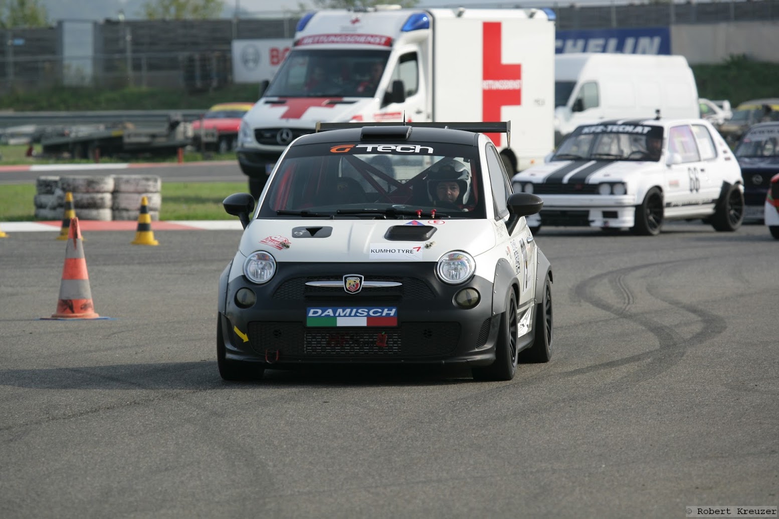 Der Rudi hatte mit seinem Assetto auch dort Prämiere. Habe ihn die weichen Rallyeslicks geborgt und er ist damit - wie wäre es anderes zu erwarten gewesen, auch sauschnell
