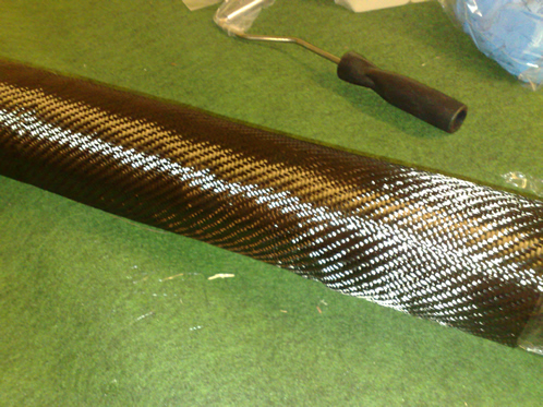 Gewünschtes Teil mit Harz einstreichen, Gewebe auflegen, und anrollern, wenn das Harz angetrocknet ist, erste Schicht Harz auf auf das Gewebe. (Bild 4)