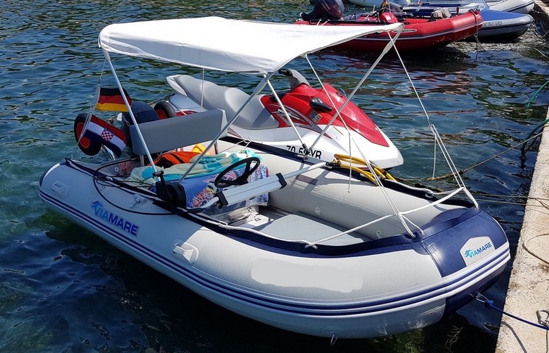 Im Urlaub angekommen darf er dann den großen Anhänger (Ladefläche 4x2m und 550kg Leergewicht) auf Seite schaffen. Und er darf dann unser Schlauchboot nach dem Aufbau, eben auf diesem großen Anhänger zum Hafen des Campingplatzes bringen. (Ich hänge mal ein paar Bilder der letzten Jahre dran. Damals noch mit unserem TwinAir)Ach ja, wir haben noch einen ungebremsten 750kg Anhänger und für das Schlauchboot auch einen ungebremsten 600kg Anhänger, die wir natürlich auch mit dem Abarth ziehen könnten. Natürlich dann nur bis 400 kg zGG.