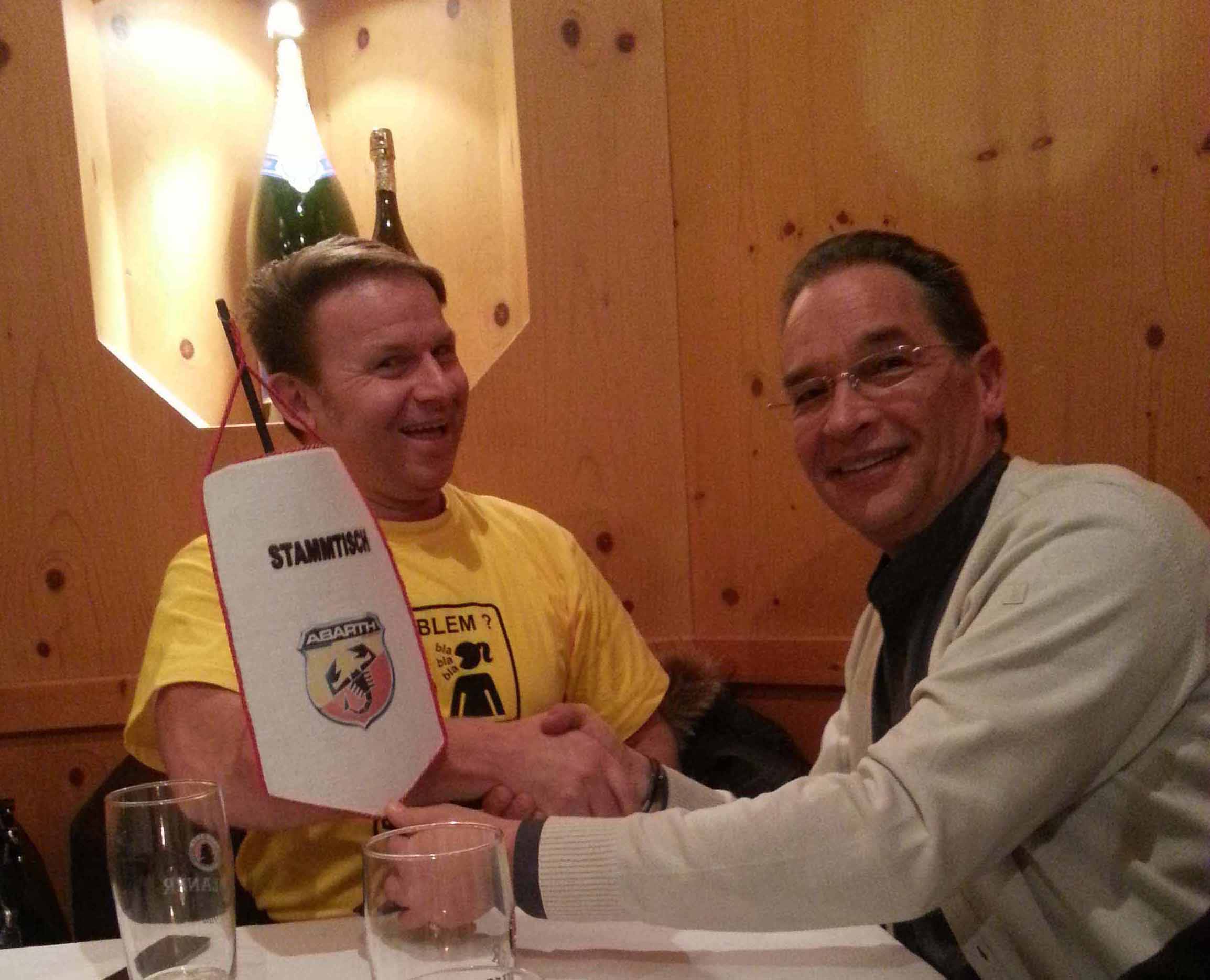 Große Unterstützung erhielten wir durch unseren Johann. Ich konnte es oft genug miterleben, wie er beim Verkaufsgespräch auf den Abarth-Club-München hingewiesen hat. War ich mal bei ihm, stellte er mich auch gleich als den Präsidenten vor. Dir lieber Johann gilt in der ganzen Zeit mein besonderer Dank. Du hattest maßgeblichen Anteil am Wachstum des Clubs. Nicht zu vergessen, Dein unermüdlicher Einsatz bei Sponsoren wie der Druckerei, dem Vorstellen von beispielsweise Anneliese Abarth, der Führungsspitze von Abarth Deutschland und vielem mehr.