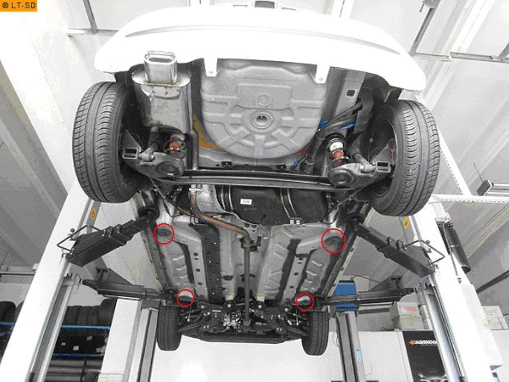 Aber auch die Punkte erkennen, wo die werkseitige Aufnahme für den Profiwagenheber (Hebebühne) ist.