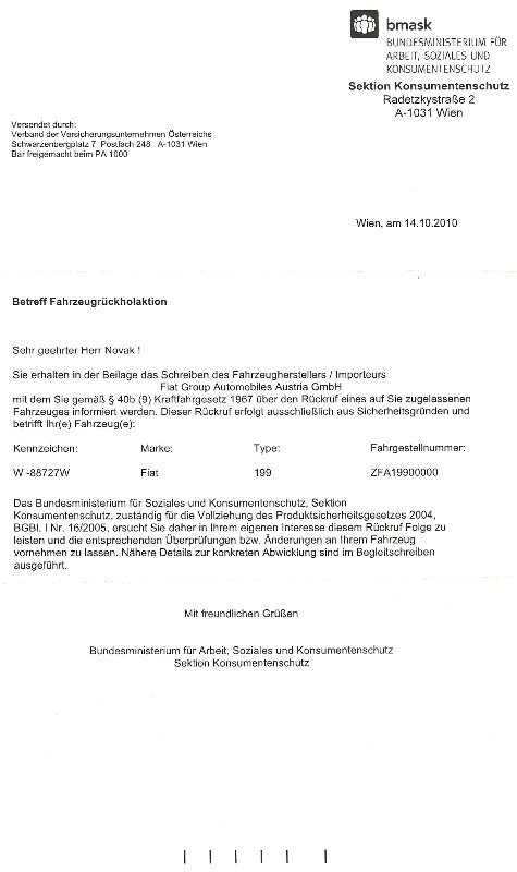 Hab heute Post von meinem Händler bekommen, welche folgenden Inhalt hatte.