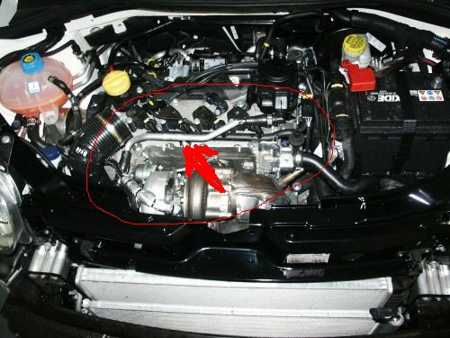 Ich hab gerade die Motorabdeckung ausgebaut und sehe zum erstaunen das vorne links vor dem Turbo eine Leitung abgebrochen ist.