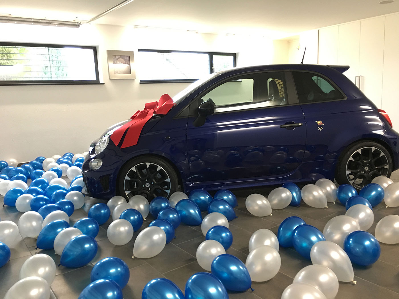 Anbei mal noch ein paar Bilder, es handelt sich um einen blauen 2017er 595 Competizione mit brauner Leder Ausstattung. Ich weiß die Sabelt fehlen, aber es soll ja für die Frau sein