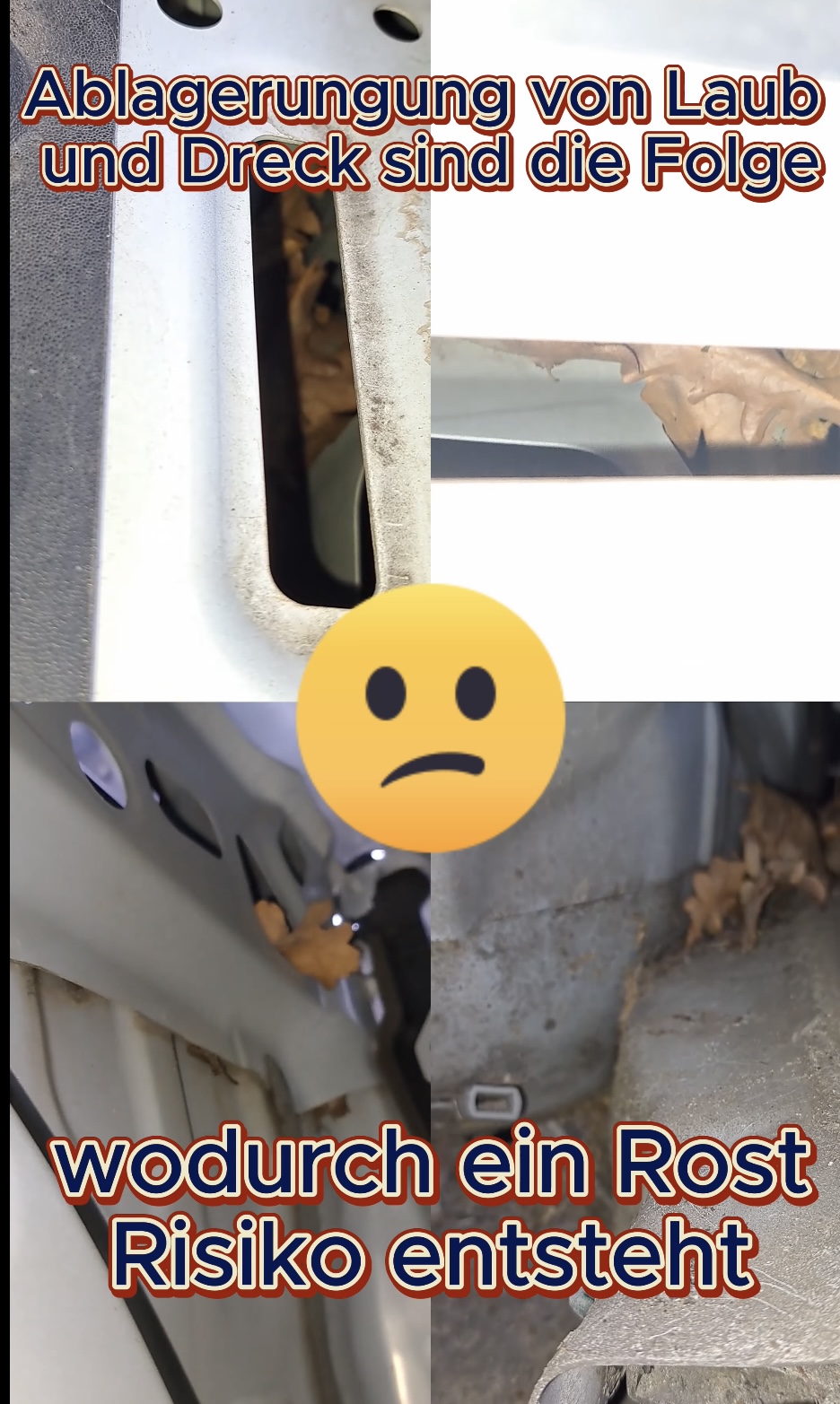 - 3d gedruckte Filterabdeckung für seitliche Kotflügel Drainage (verhindert, dass Blätter reinkommen, welche das Ablaufen erschweren - Wasser speichern und potenzielle Rostbildung am vorderen Schweller fördern)