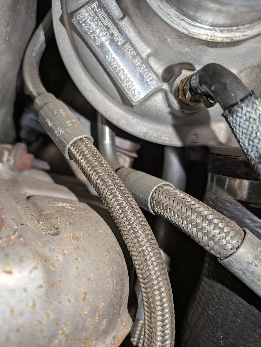 Die 16er Schlauchleitung, welche ich hier habe, ist auch so unglaublich dick dass es einfach extrem schwer wird, diese ordentlich zu verlegen. Klar der Schlauch verlangt nach großen Radien, aber der 500er gibt den Platz dafür nur mit Gewalt her. Darum hab ich mich für eine 14er Leitung entschieden, welche kurz vor den Anschlüssen auf 16mm adaptiert wird. Es gibt ja auch noch den Weg, das originale KGE-Röhrchen zu kürzen und vom Catch Tank dann auf dieses zu gehen.