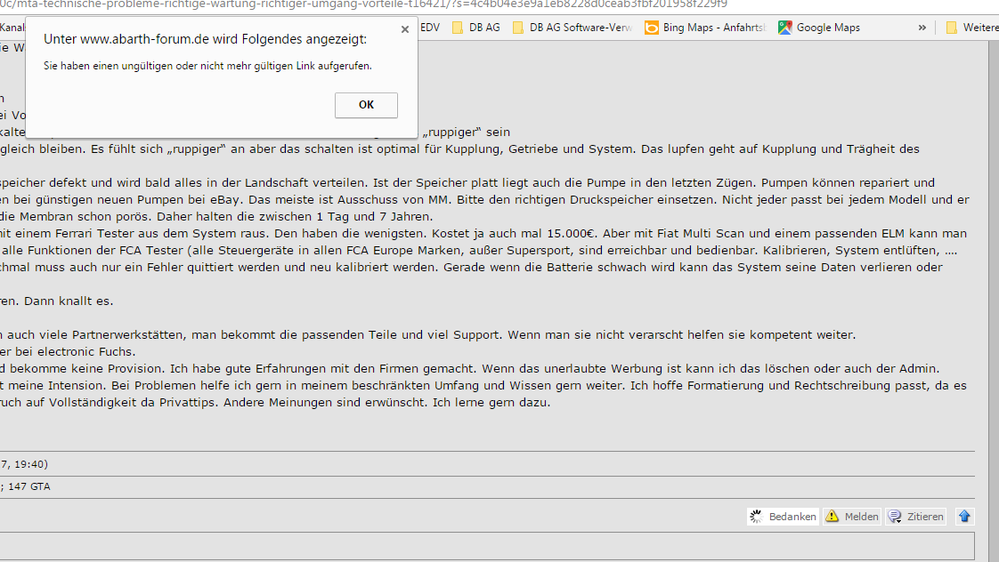 wie bereits in der Vergangenheit kann ich mich nicht bedanken. Es kommt der Hinweis: "Sie haben einen ungültigen oder nicht mehr gültigen Link aufgerufen." Was tun?