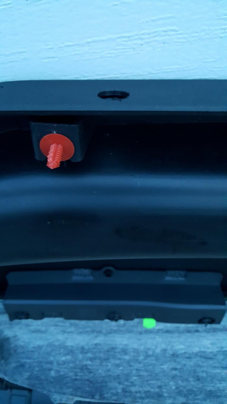 entfernen. Hochklappen und Schraube lösen. So dann hinlegen das der Gurt nicht