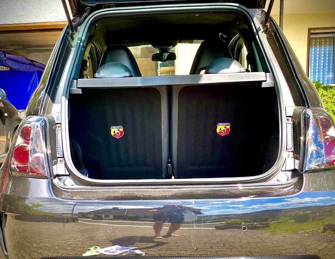 Abarth 500 + 500 C. Die Verkleidungen sind schwarz, passgenau zugeschnitten und mit zwei Abarth Enblems versehen.